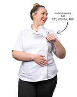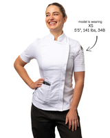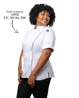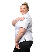 Timeless and crisp white, this classic, elegant style was grown from a desire to be able to dress every female chef out there, making Funky Chef a one-stop-shop for all female chefs, no matter their style or work requirements.