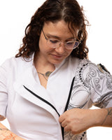 Created with yacht chef and artist Brittany Adkinson, the Koru jacket features Māori-inspired patterns like Tiki, Koru, Hei Matau, and Kiwi, symbolizing "new life, growth, strength, and peace." This design blends cultural depth with modern elegance.