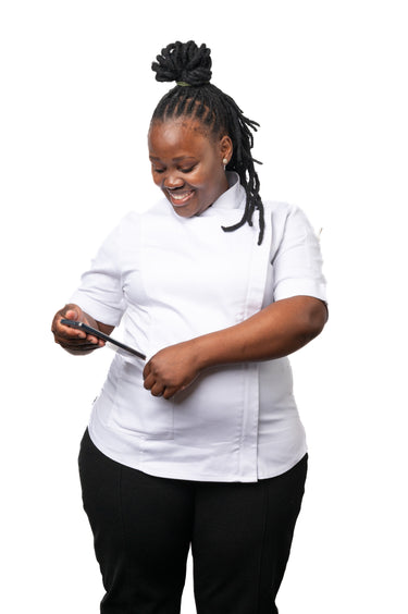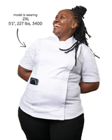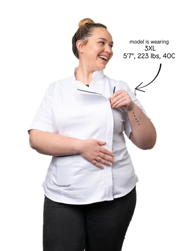 Timeless and crisp white, this classic, elegant style was grown from a desire to be able to dress every female chef out there, making Funky Chef a one-stop-shop for all female chefs, no matter their style or work requirements.
