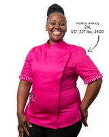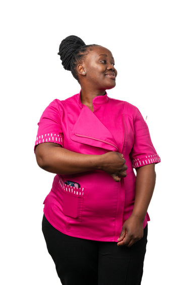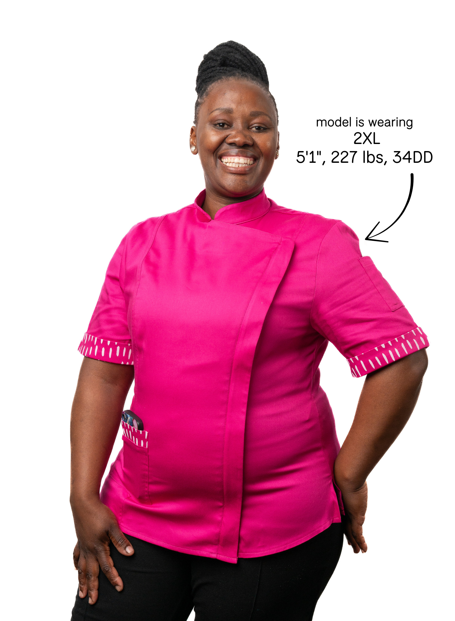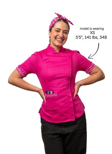 Bold, exotic, and full of energy—just like its namesake. The Dragonfruit jacket brings a burst of vibrant fuchsia to the kitchen, with a sleek, fitted silhouette that makes confidence its main ingredient. Designed for chefs who thrive on creativity and stand out in every space, it’s a statement piece that’s as unforgettable as the fruit itself.