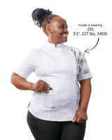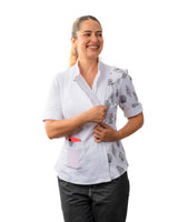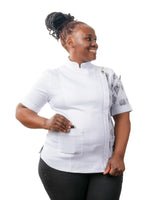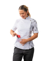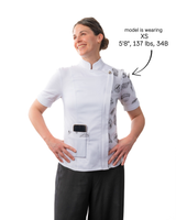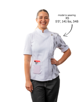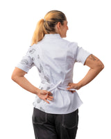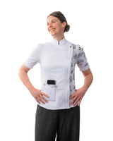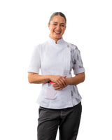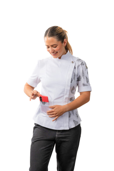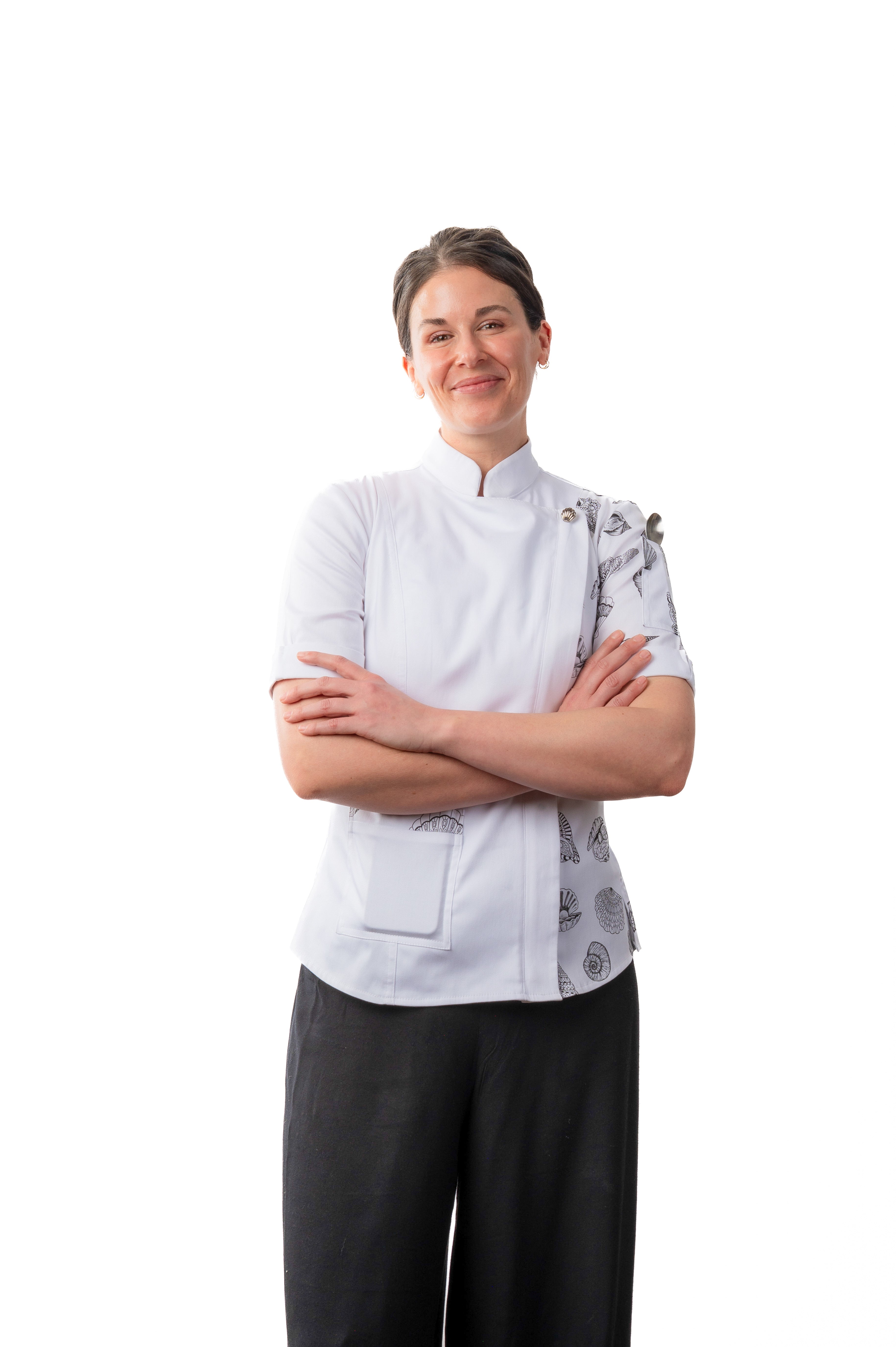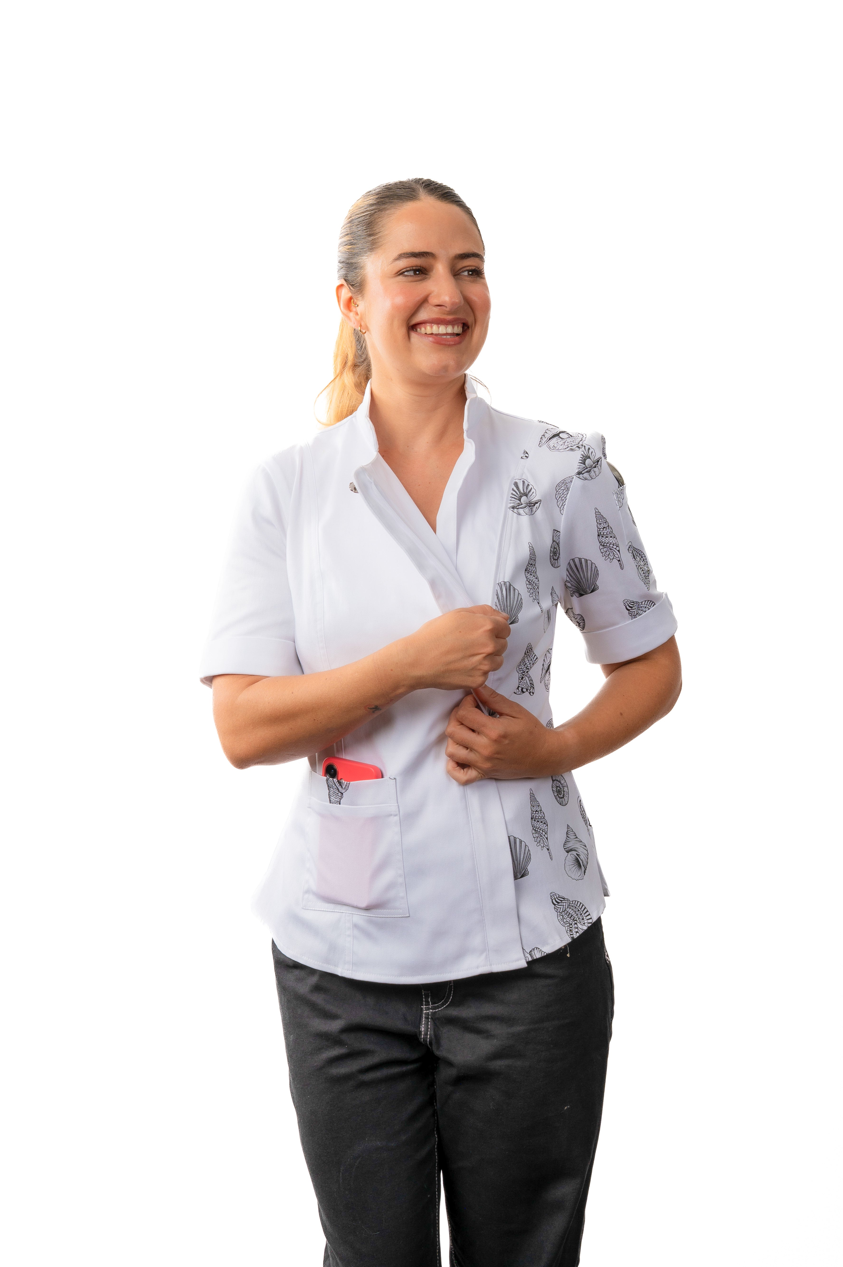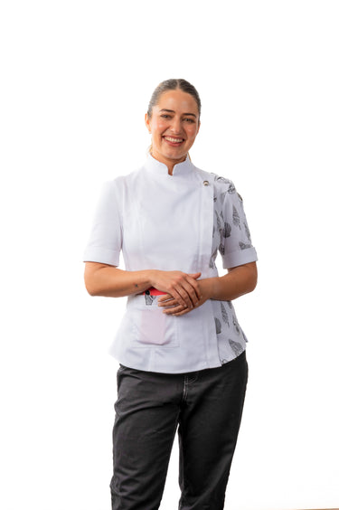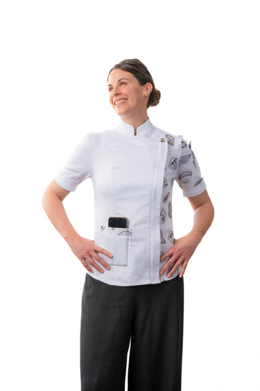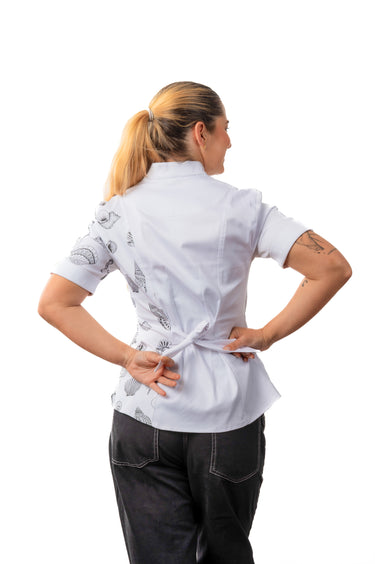 Clean, graceful, and ocean-inspired — the Sephira jacket captures the spirit of the shore in a refined white design. With shell artwork by tattoo artist Bethan Langley of Lucid Shadow Studio, it blends simplicity with soul — made for chefs who feel most at home by the sea.