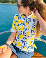 Picture the scene: you’re enjoying a fresh and zesty lunch on a yacht anchored off the Amalfi Coast in Italy. This crisp and sunny lemon pattern transports you there—no passport required.