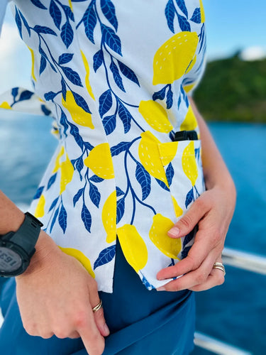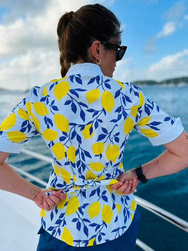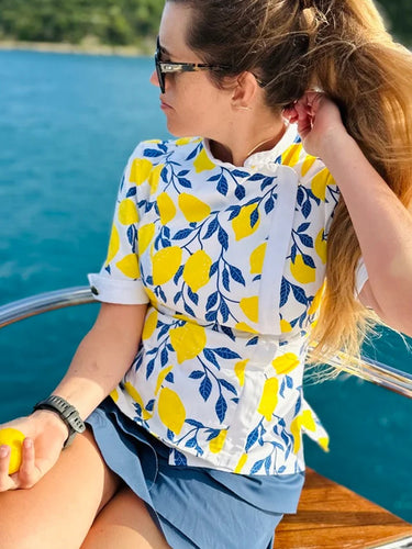 Picture the scene: you’re enjoying a fresh and zesty lunch on a yacht anchored off the Amalfi Coast in Italy. This crisp and sunny lemon pattern transports you there—no passport required.