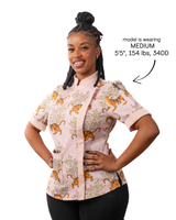 Refined, expressive, and rooted in strength — the Kali jacket pays tribute to the Indian tiger, blending light rose tones with a detailed print that tells a story of courage and artistry. Designed to flatter and empower, it’s a symbol of focus and individuality in the kitchen.